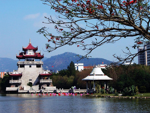 址系古泉州八大胜景“东湖荷香”遗址。唐时湖面40余顷,有东湖亭、二公亭;宋有波恩亭;明有揽古亭。盛植荷花,成星湖荷香胜概。因唐姜公辅、韩愈、欧阳詹等曾在此活动而闻名于世。东湖公园以闽南建筑文化为特色,中心湖为主体,环湖布置人文景观。构建星湖荷香、祈风阁、七星拱月、二公亭、东湖亭、波恩亭、揽古亭等静区;儿童乐园、双舟朝阳、游船码头为动区。精筑刺桐瑞林等20多处植物山石景观揽翠全园,以石雕、石刻突现闽南石文化。既有泉州历史文化内涵又有时代新潮气息,风格独特。曾三次获省“环境优美奖”,还被评为“市民喜爱十佳建筑”、“泉州十佳夜景”。1998年以其典雅秀丽、玲珑多姿的江南园林风格而入选百家中国名园。