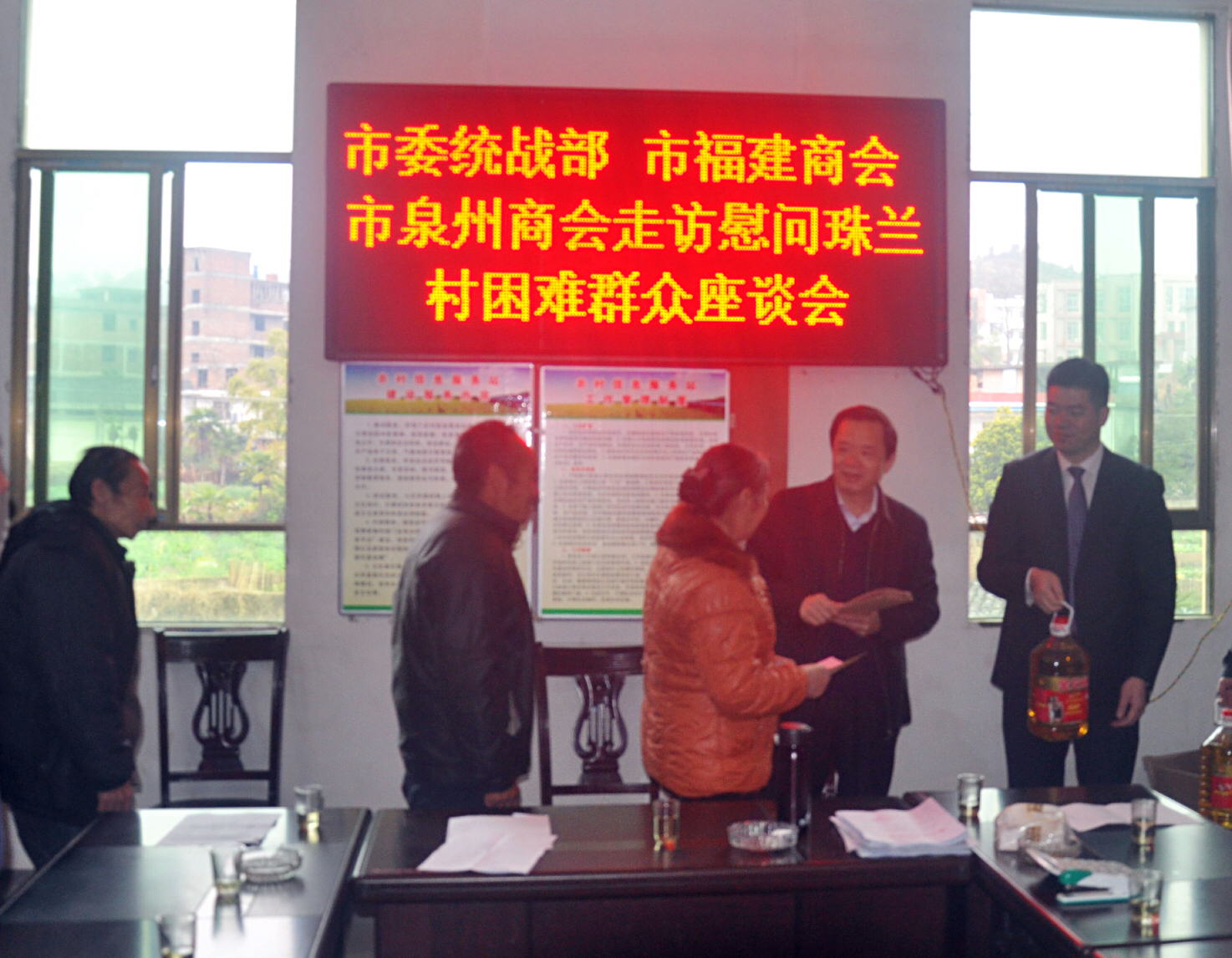 2月25日,市政协副主席、市委统战部部长李蔚带领市委统战部“三送”干部和泉州商会会长一行来到会昌县珠兰乡珠兰村开展春节走访慰问活动。市委统战部副部长饶秋平,会昌县政协副主席、县委统战部部长钟永忠陪同走访慰问。
